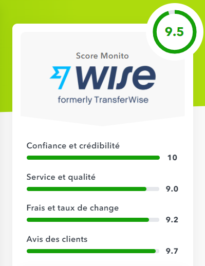Wise a reçu 8,8 sur 10 sur Monito. Wise est considéré comme l’une des options les plus accessibles et les plus faciles à utiliser sur le marché des transferts par le biais de services en ligne.
